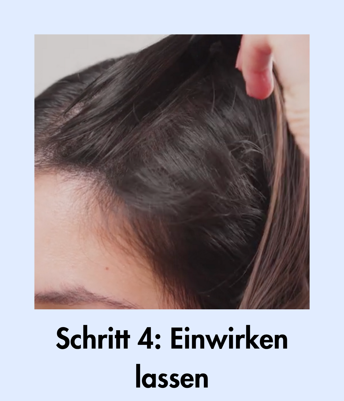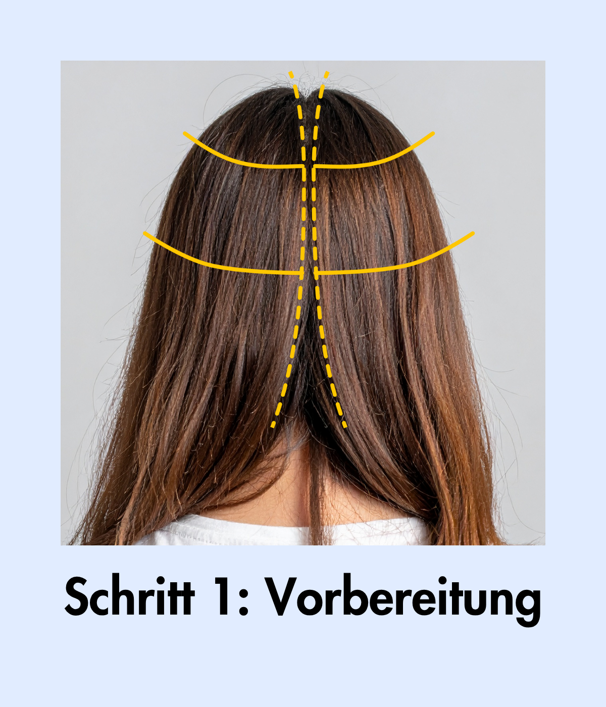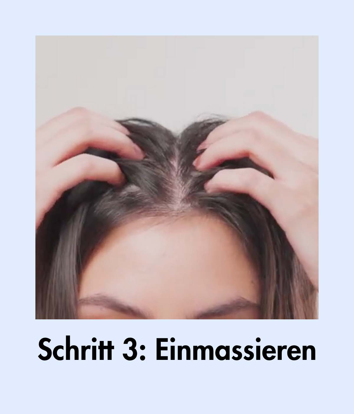 Ziehe mit einem Kamm einen Mittelscheitel und unterteile Dein Haar in 4 Partien. So erreichst Du die Kopfhaut gezielt und kannst das Serum gleichmäßig auftragen.